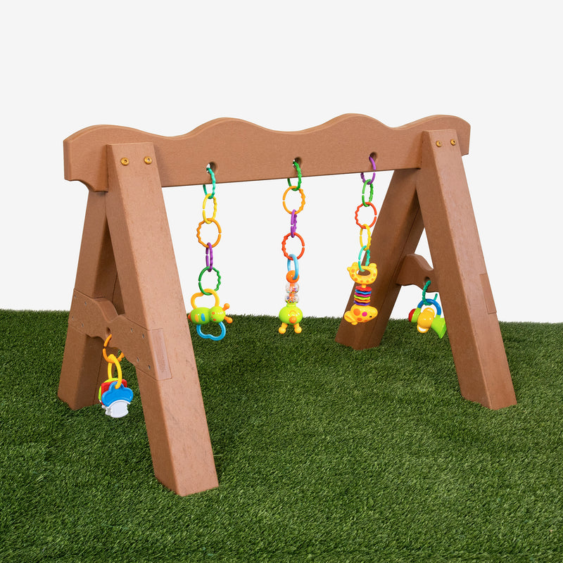 A low-profile activity frame built for outdoor sensory play — now made from recycled plastic. It’s splinter free, UV stabilized, and easy to sanitize, with rounded edges and smooth surfaces for infant hands. Color options coordinate with your playscape.